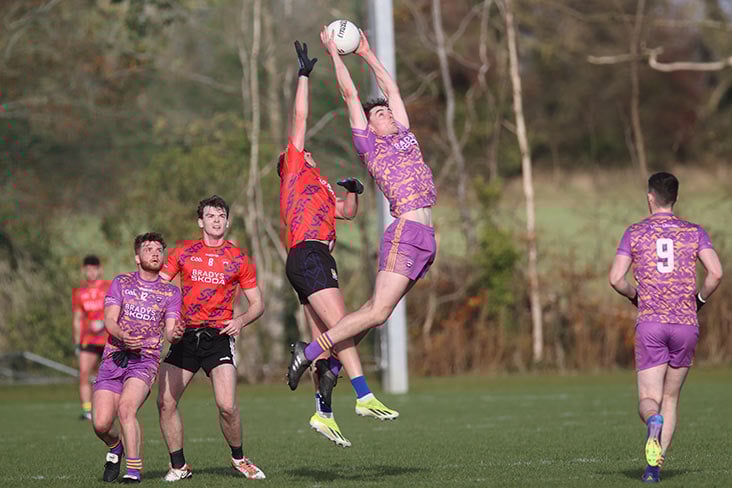 Speaking of goals, Loughcrew will have to wonder how they didn’t manage to rattle the net in the first half as no less than three clear goal chances went abegging, the first coming from CJ Healy in the third minute after great pressure forced a turnover ball, but Matthew Brennan in the Ardbraccan net did well to deny him.