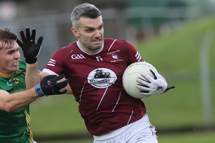 A further St. Colmcilles point extended their advantage before the introduction of another former county footballer from the Moynalvey bench paid immediate dividends when a fortuitous bounce of the ball saw Mark O’Sulivan race forward to bury low across Andrew Beakey, leaving it 1-14 to 3-7 with seven minutes remaining.