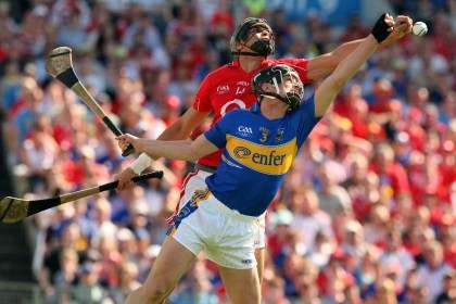 Tipperary's Paul Curran and Asaike O hAilpin of Cork battle in out the Munster SHC at Thurles
